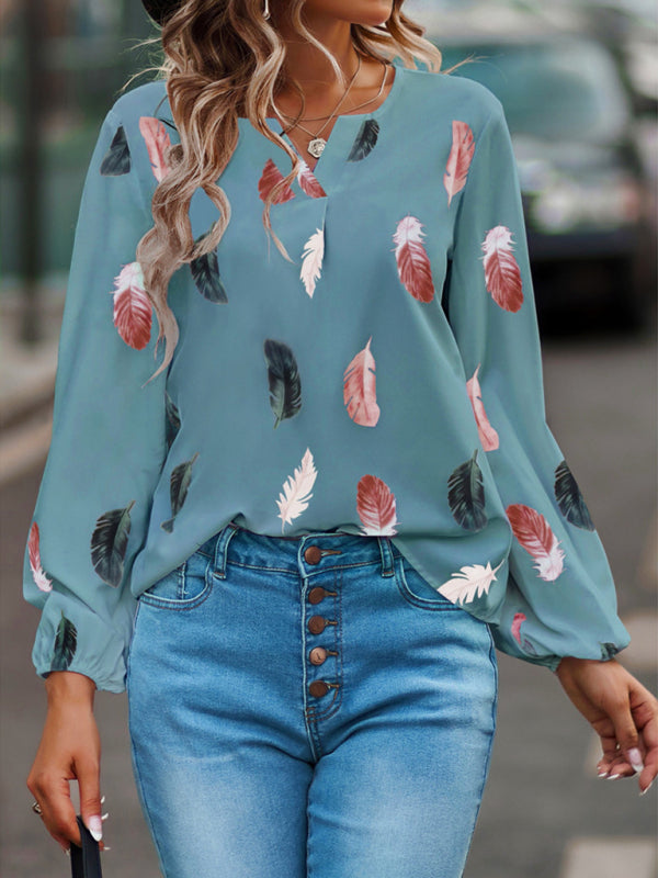 Eleve o seu estilo diário sem esforço com esta t-shirt de manga comprida com decote em V e estampa de penas. Confeccionada em poliéster leve tecido, oferece um ajuste descontraído e oversized que cai confortavelmente sem agarrar. O tecido macio e o design respirável tornam-na perfeita para sobreposição ou para usar sozinha em todas as estações. Um motivo subtil de penas adiciona um toque de interesse visual, enquanto o decote em V valoriza o seu pescoço. Combine-a com jeans para um dia casual ou enfaixe-a numa saia para um look mais polido. Esta peça versátil é a sua escolha para conforto, facilidade e charme descontraído.